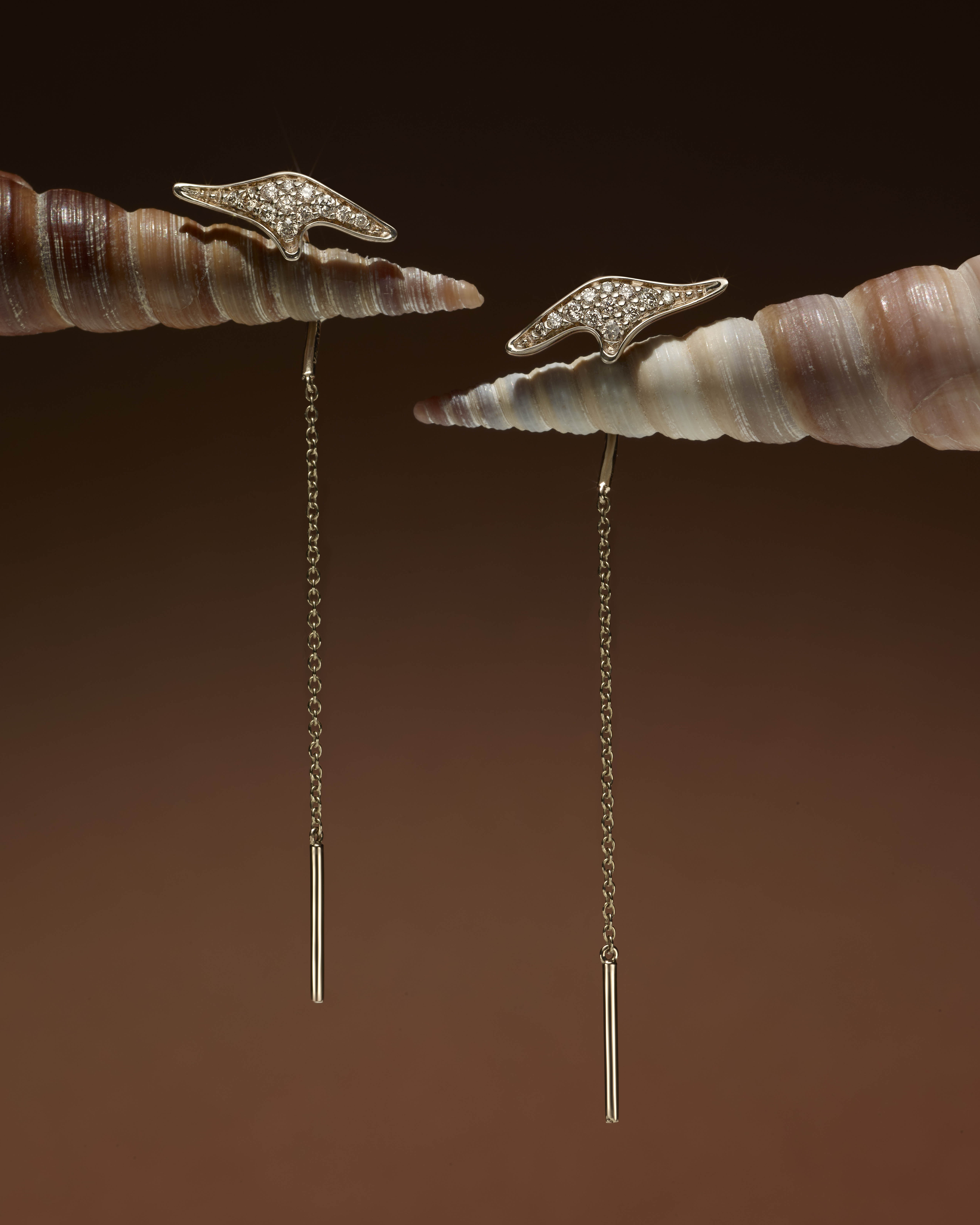 Entre correntes e marés, surgem as arraias, brilhantemente representadas nas joias de Ouro Nobre 18K e diamantes da coleção Mar de Voltas. Suas formas suaves traduzem em design o movimento fluido desses seres que deslizam com leveza pelas profundezas do oceano. O brilho dos diamantes reflete a luz que penetra as águas, revelando nuances e texturas que evocam a beleza silenciosa do mundo subaquático.
