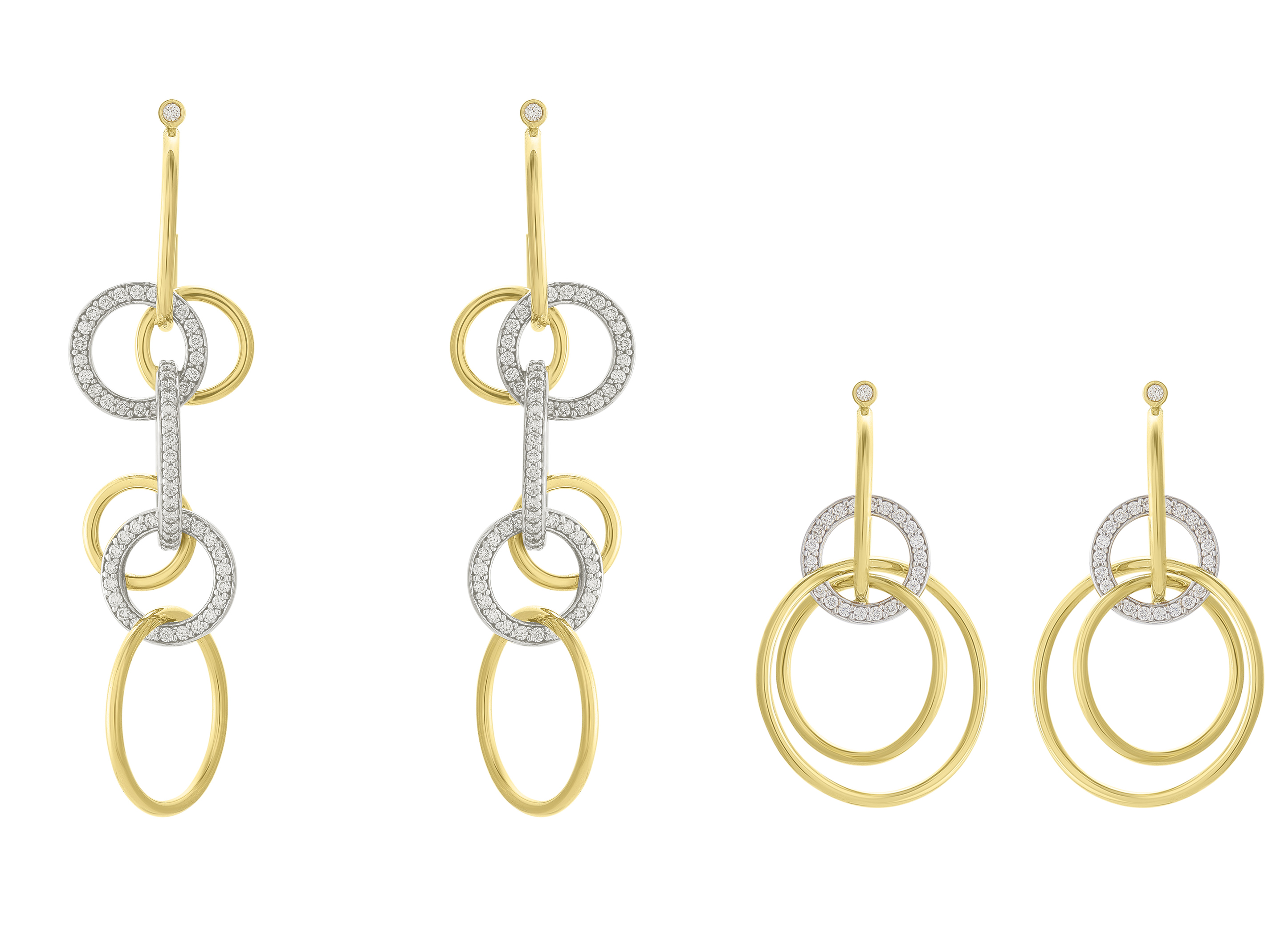 Os novos brincos da coleção Oitenta chegam mais bold, alinhados ao retorno do maximalismo no universo fashion. Os elos em cascata ganham volume e movimento, combinando ouro amarelo e ouro branco 18K com diamantes para criar um visual escultural e luminoso. Nas versões longas ou mais compactas, as formas circulares se multiplicam com leveza, assumindo protagonismo imediato. Uma atualização moderna e marcante para quem busca presença com sofisticação.